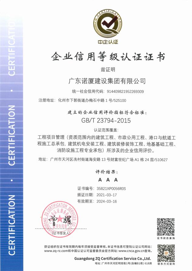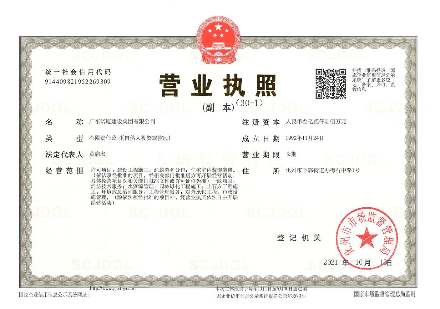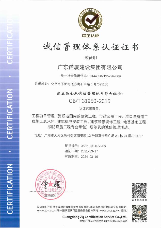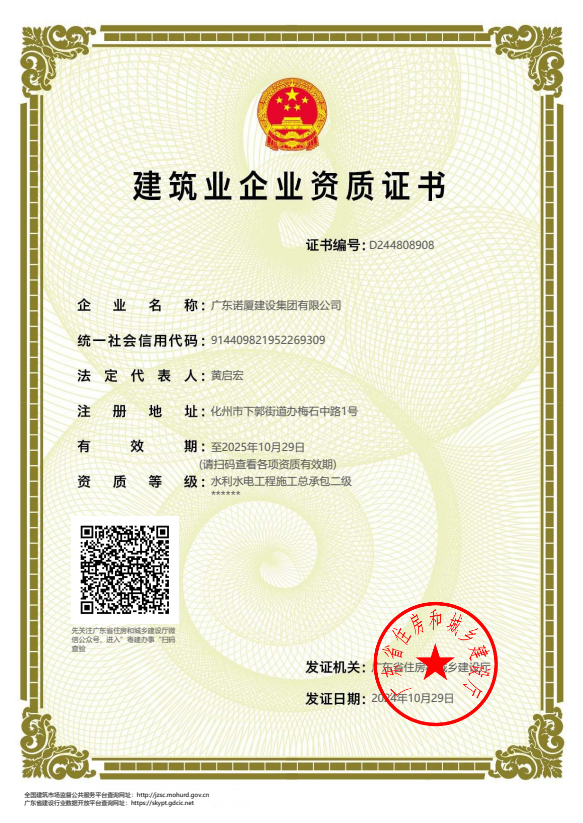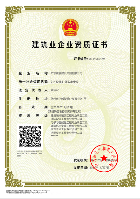 廣東諾廈建設(shè)集團有限公司是諾廈集團的核心企業(yè),具備國家房屋建筑工程施工總承包壹級、市政工程施工總承包壹級、港口與航道工程總承包、建筑裝修裝飾工程、消防設(shè)施工程、地基基礎(chǔ)工程、機電設(shè)備安裝工程、體育場地設(shè)施工程、建筑智能化工程、河湖整治工程、水利水電工程等資質(zhì)。......